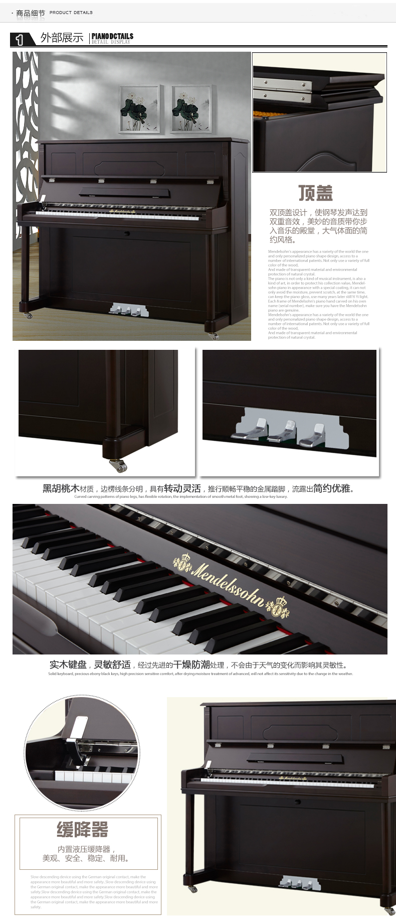- 采用德國(guó)mendelssohn專制擊弦槌,音質(zhì)更加柔美。