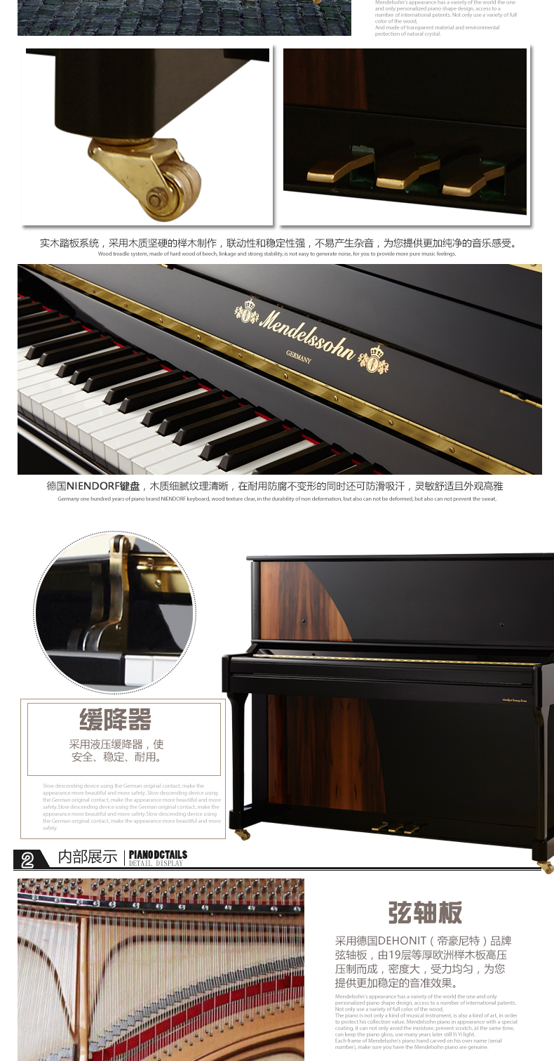 擊弦機(jī): 德國鋼琴品牌NIENDORF特選擊弦機(jī),擊弦效果更靈敏、有力,攀帶作用更穩(wěn)固,保證擊弦槌的快速連擊速度。