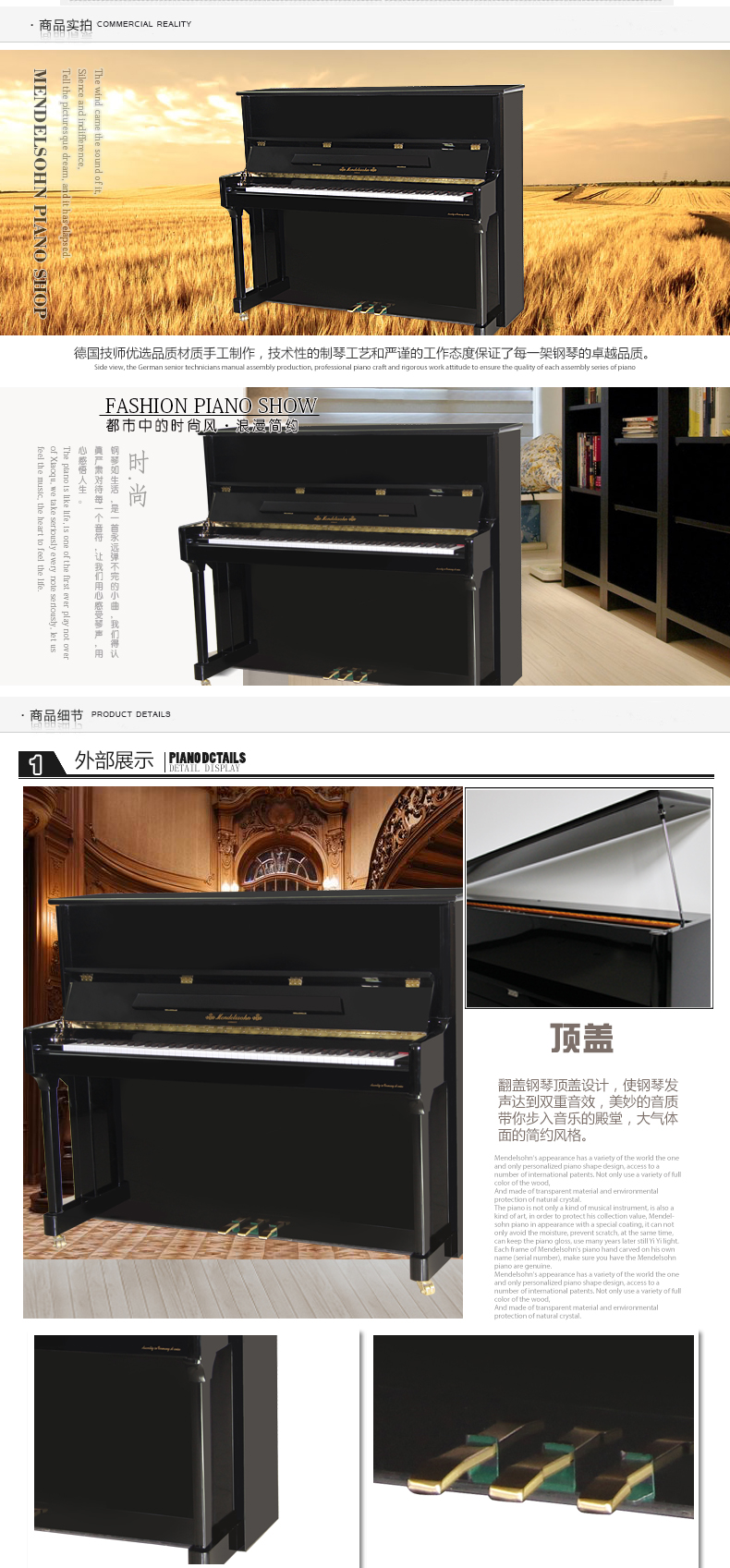 采用彰顯尊貴的歐式外型設(shè)計,精選高品質(zhì)材質(zhì),雅致外觀與超凡音質(zhì)相結(jié)合。德國高級技師手工組裝制作,專業(yè)的制琴工藝和嚴謹?shù)墓?作態(tài)度保證了每一架進口系列鋼琴的卓越品質(zhì)。同時,每一架進口系列鋼琴在出廠時都須經(jīng)過嚴格的檢驗、調(diào)試、整理,保證每位使用者都 能感受到它的純真的音質(zhì)。