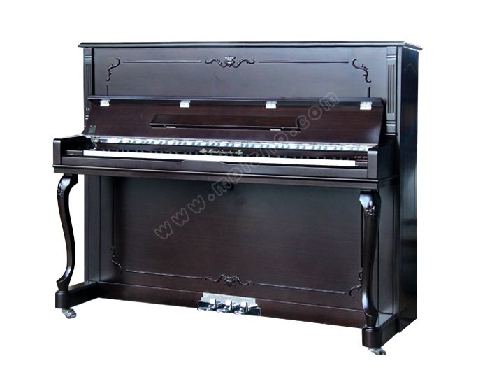 - 胡桃木色亞光琴身,大搖蓋,單琴耳,小譜架,大弧形彎腿雕有線形花紋,上、下門刻有精致的花枝、花蔓,盡顯浪漫、優(yōu)雅。