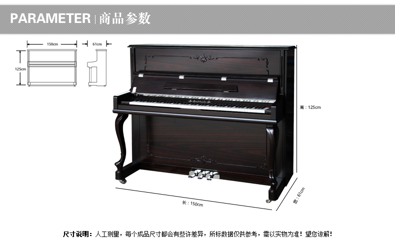8.鍵盤:歐洲白松實木鍵盤,烏木黑鍵,不易開裂變形,具有很好的觸感