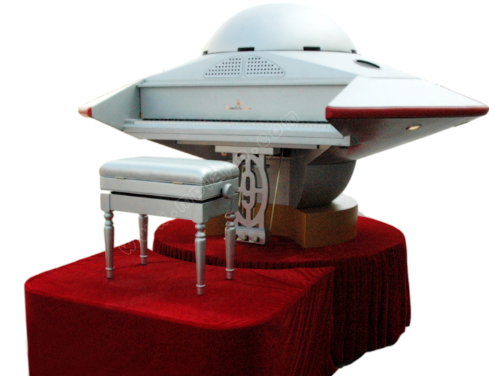 這款概念琴是繼 2010年的“世博館”概念琴在展會上成為一大亮點后,門德爾松鋼琴設(shè)計團隊在中國共產(chǎn)黨成立 9 0周年之際,又大膽推出的一款概念琴--“飛碟”,讓本屆展會上的觀眾再次一飽眼福